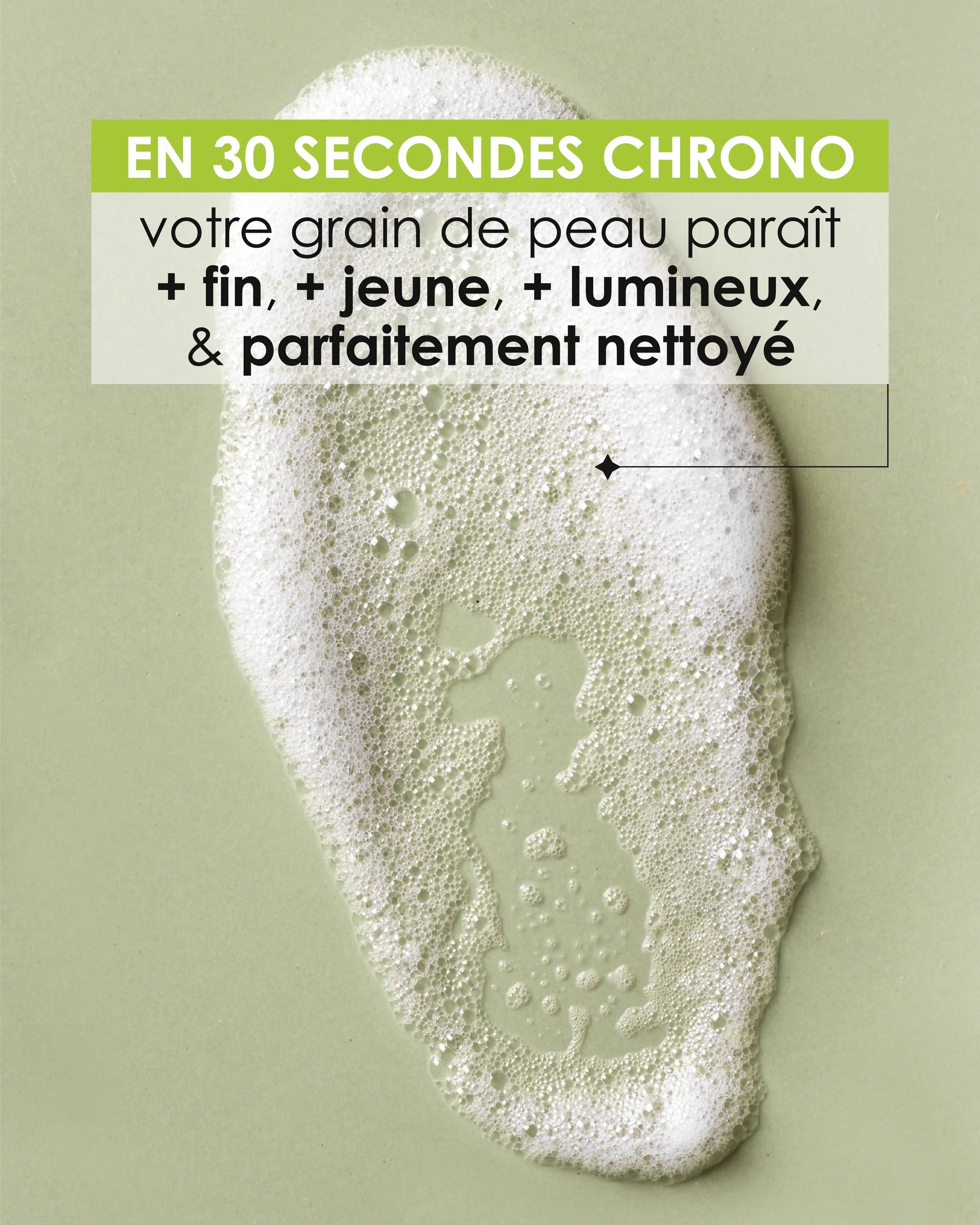 En 30 secondes chrono⁽¹⁾ : votre grain de peau paraît plus fin, plus jeune, plus lumineux, et parfaitement nettoyé.