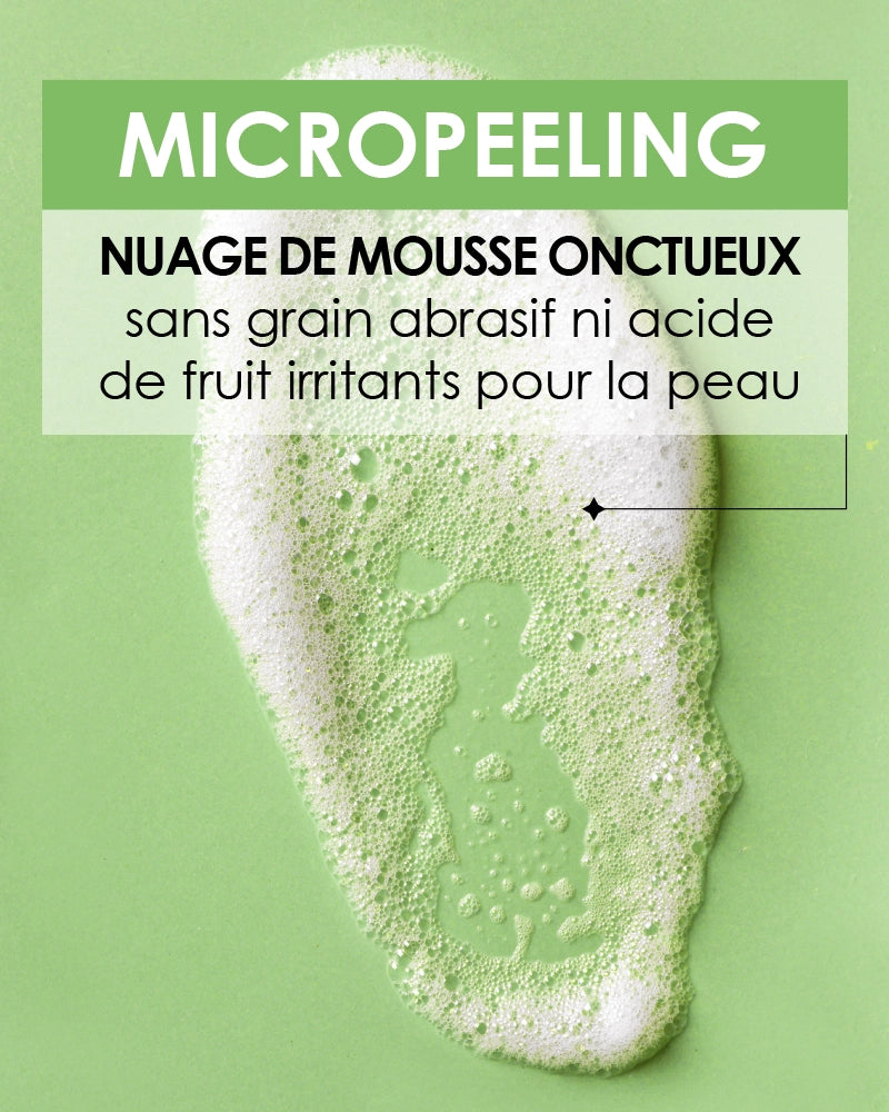 - Nuage de mousse onctueux sans grain abrasif ni acide de fruit irritants pour la peau