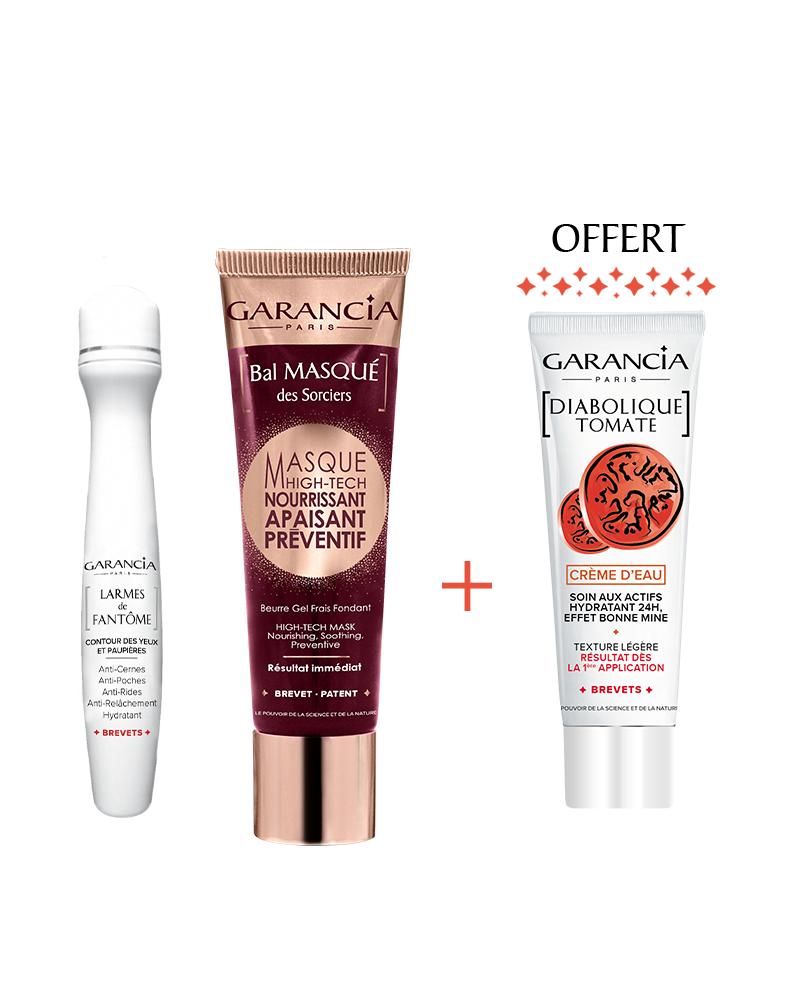 Pour une peau 100% apaisée⁽³⁾, finissez votre routine avec le [ Bal MASQUÉ des Sorciers ]. Un masque visage HIGH-TECH 4-en-1 Nourrissant, Apaisant, Préventif, qui va à la fois hydrater, apaiser, réparer et protéger la peau en un seul geste.
